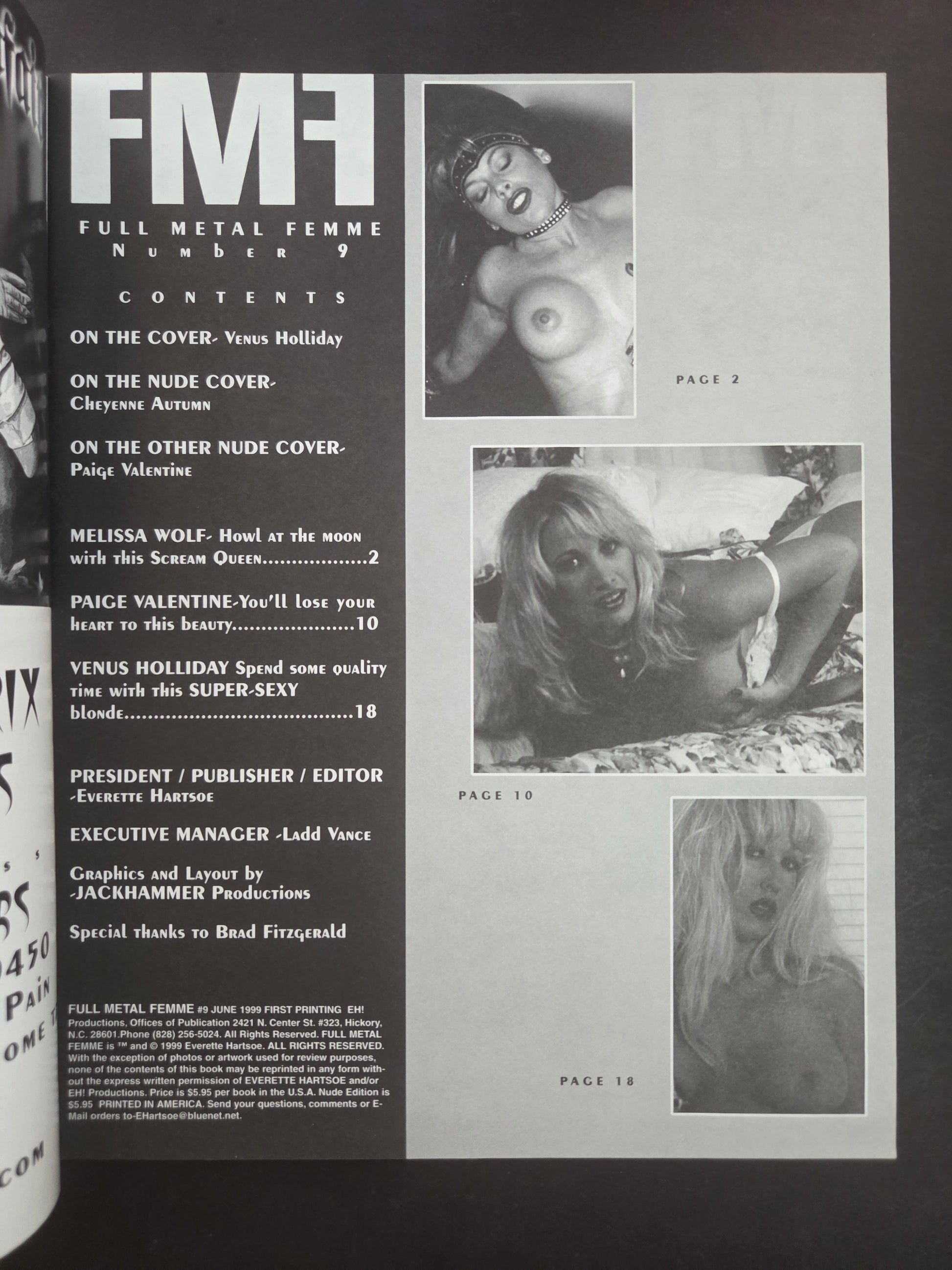 Everett Hartsoe, creator of London Night comics and film producer, came out with this sexy mag for the 90s. June 1999 issue from Full Metal Femme. Featuring alternative bad babes seen in other magazines like Easyriders, Outlaw Bikers and adult films.