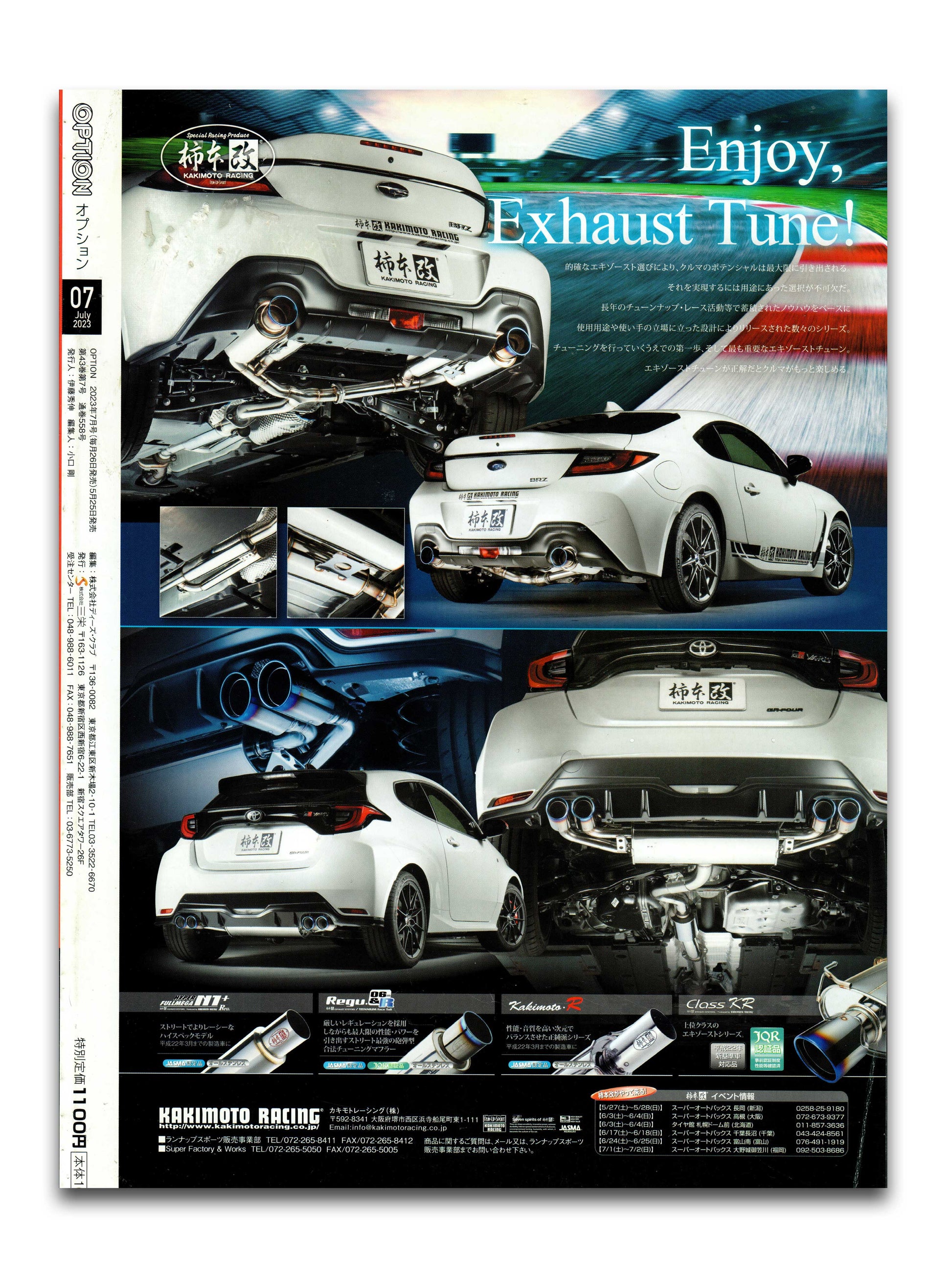 Option is a long-running Japanese auto culture magazine that began in 1981. Specializing in tuner and customization, Option has very often been at the forefront of the latest trends and progression in Japanese car culture. This July 2023 issue is a rally exclusive, with stock shootouts between the Impreza WRZ type RA STi Version and the Lancer Evolution VI GSR, the HKS Lancer racing team, 1995 Group A Celica and more classic cars.