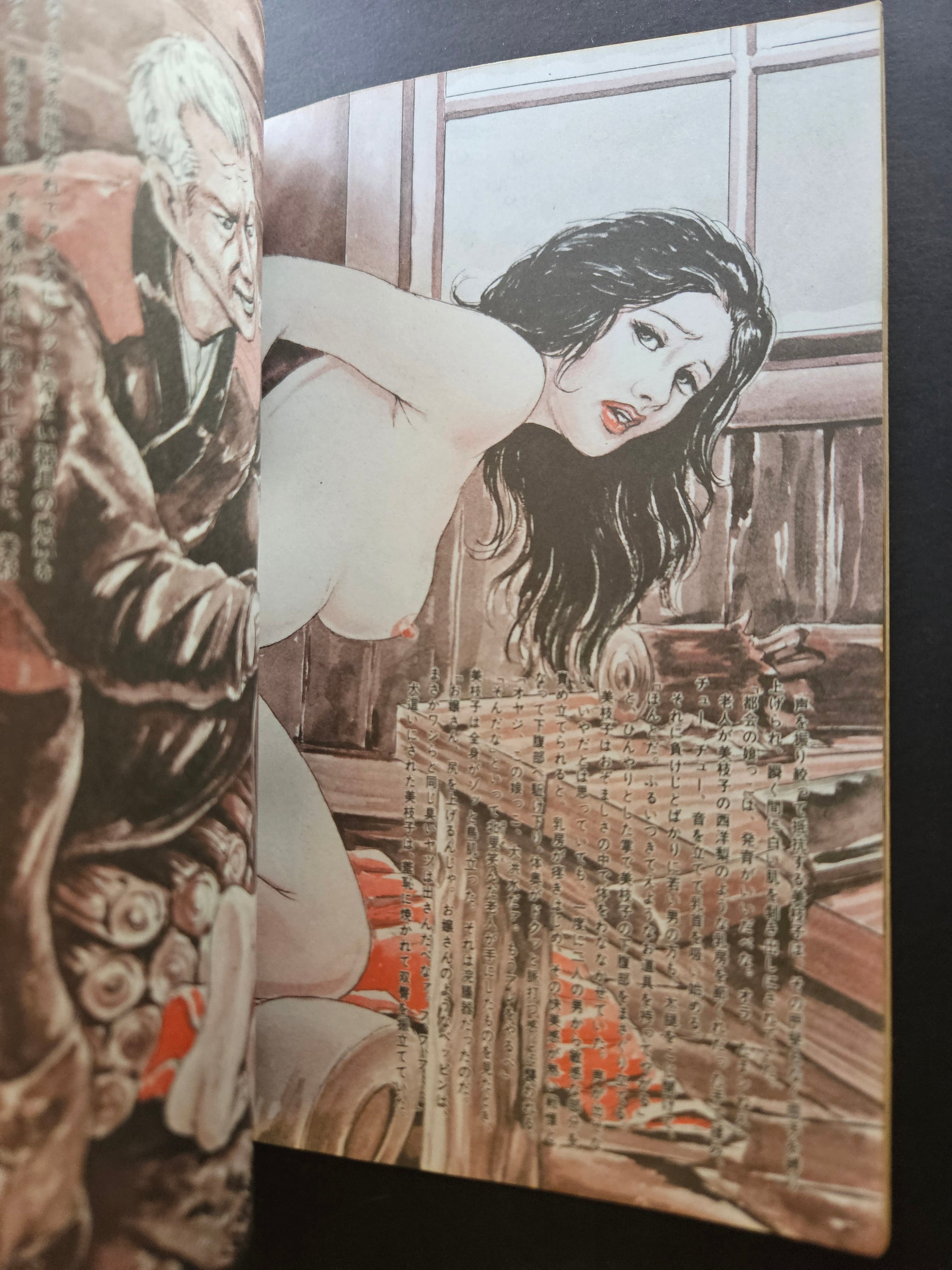 Special edition of SM Fan from December 1977, an erotic magazine mostly in a pocket-sized format. This version, however, is much larger, comparable to SM Select and SM Secret Novel, both with beautifully painted Youko Ozuma women gracing their covers. Photography, illustrations, comics and novels by the underground industry's most notable artists.
