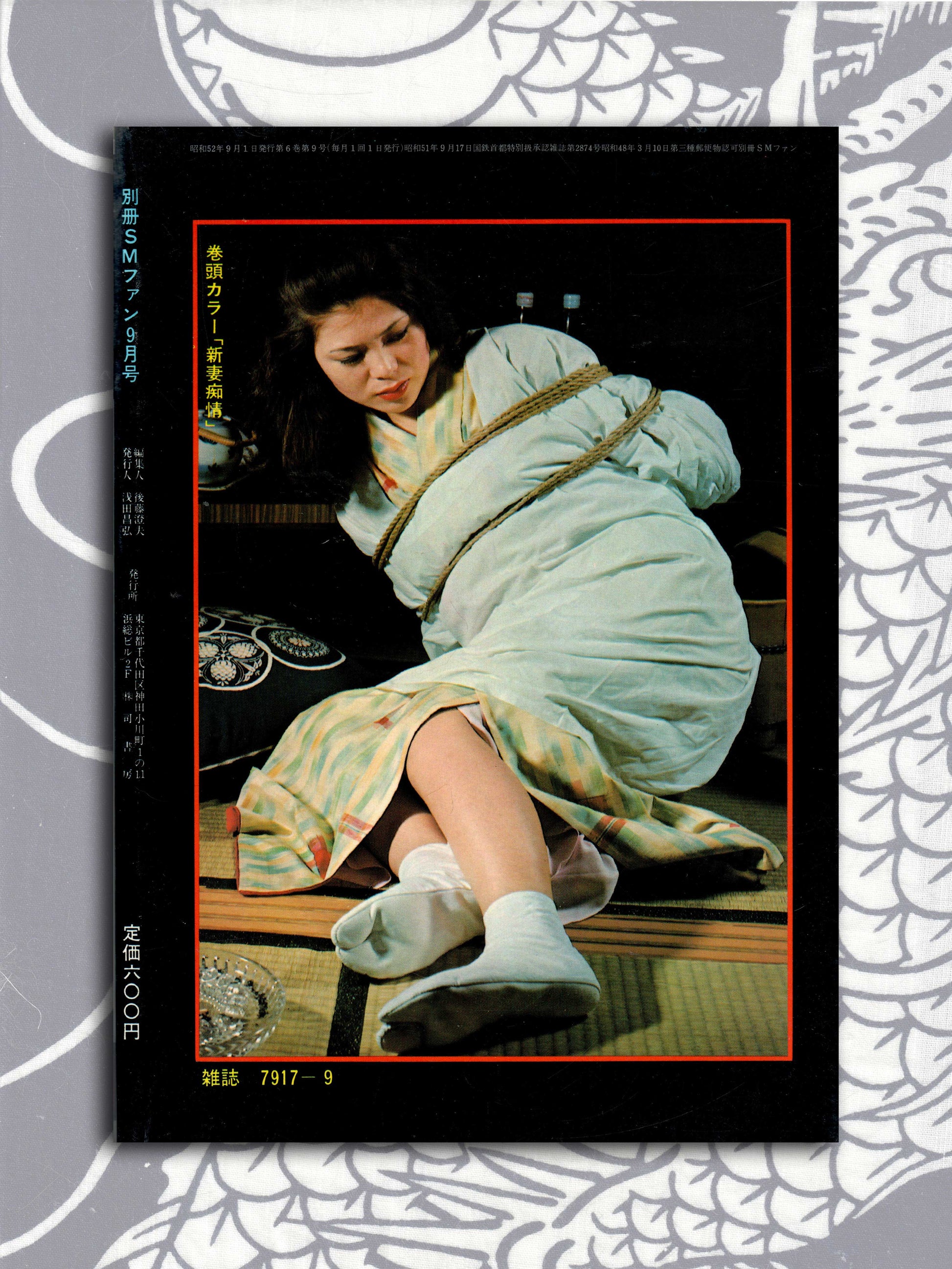 Deluxe version of SM Fan from September 1977 Beautiful cover by Yoko Ozuma, with interior art by Yuji Nirehata, Hiroshi KIrioka, Tooru Katsuki and many more. Bondage galleries, short stories and other fanfare from one of Japan's best SM magazines of the 70s and 80s.