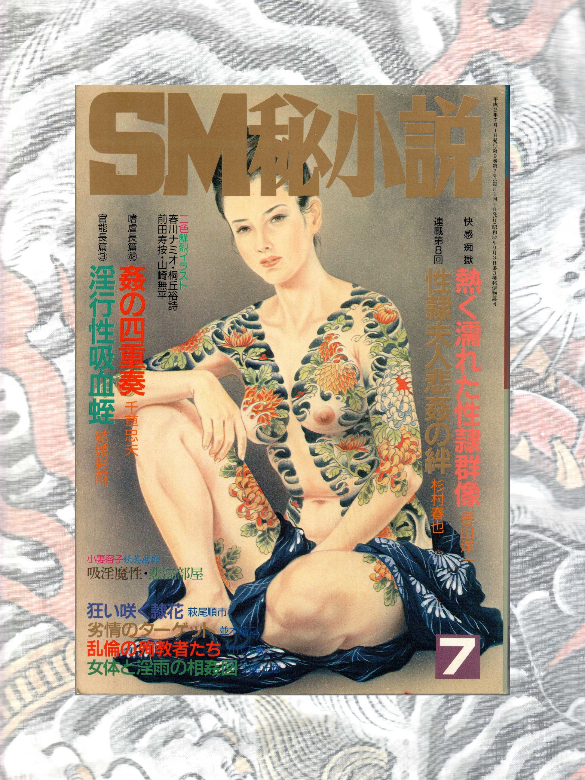 SM Secret Novel by Sanwa Publishing from January 1993. This magazine came in a digest book style and featured some of the best erotic Japanese artists, like Kaname (Yoko) Ozuma (cover, foldout painting inside), Shoji Oki, Namio Harukawa, Shiro Tsujimaru, Taro Yamamoto and many more. Fantasy fiction, bondage/kinbaku photography, manga and illustrations make this a highly collectible adult book series.