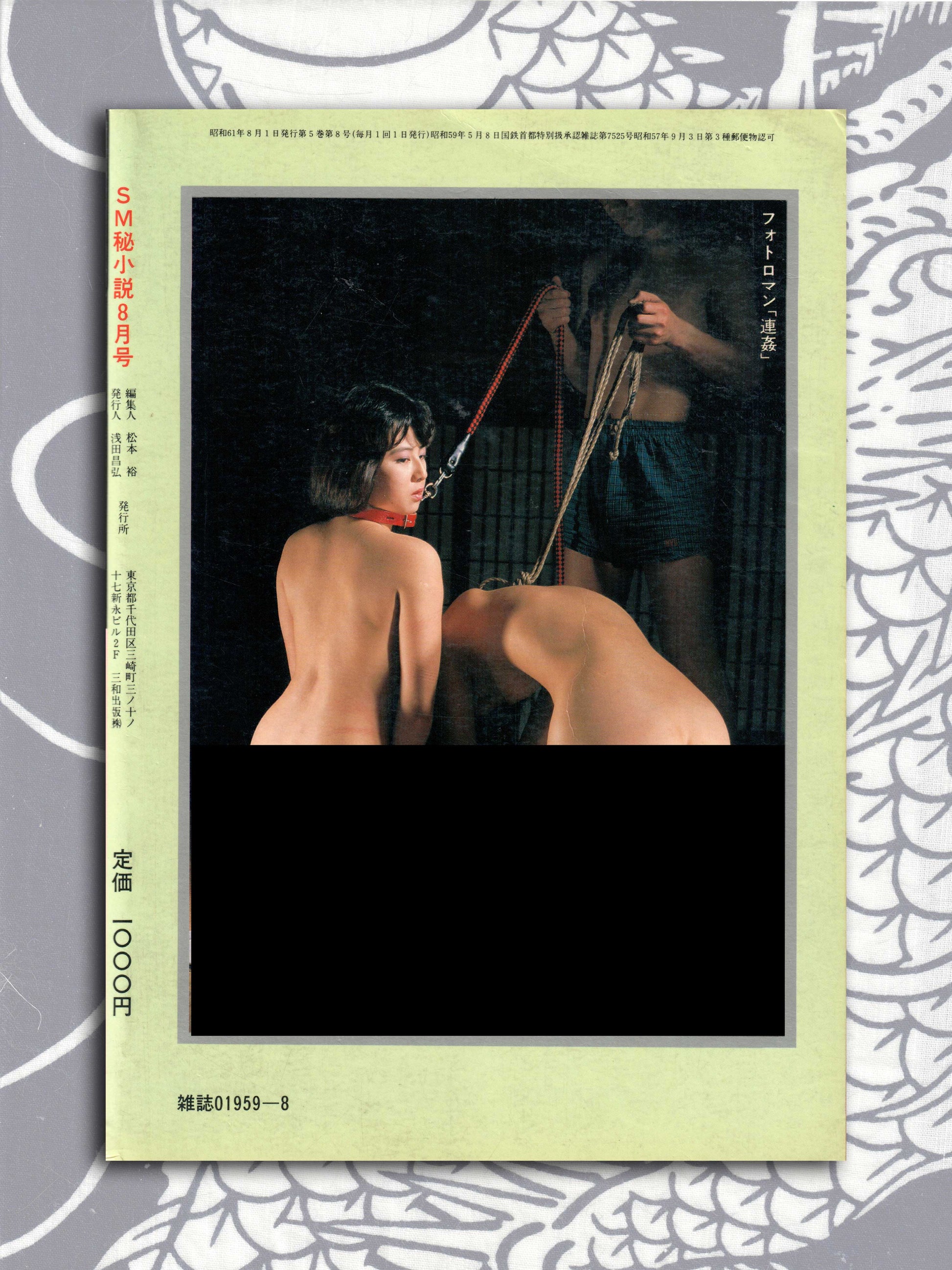 Very good condition copy of SM Secret Novel by Sanwa Publishing from August 1986. This magazine came in a digest book style and featured some of the best erotic Japanese artists, like Kaname (Yoko) Ozuma (cover, double-sided foldout painting inside), Namio Harukawa, Shoji Oki, Yoji Muku and many more. Fantasy fiction, bondage/kinbaku photography, manga and illustrations make this a highly collectible adult book series.