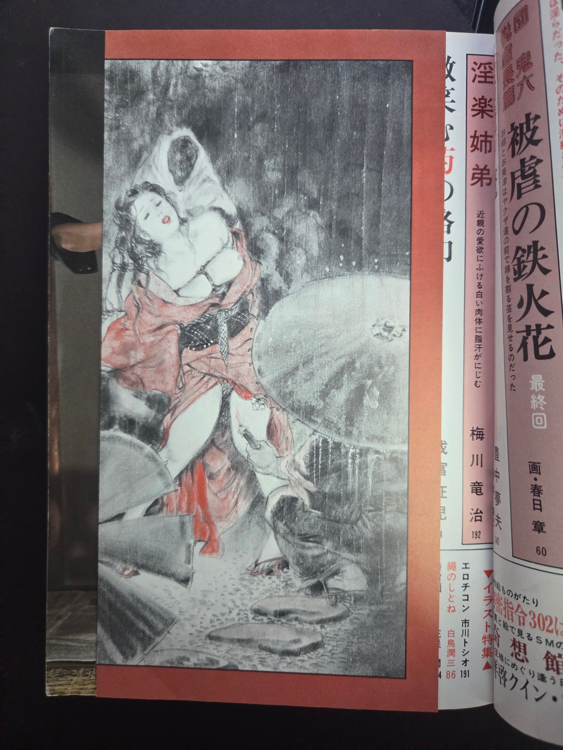 Running for 20 years between 1970 and 1990, SM Select was a large step up in erotic and fetish art magazines for Japan. Many covers featured the artwork of Kaname (Yoko) Ozuma, like this issue here. Interior art also by Yoko Ozuma, Juan Maeda, Yuji Muku and many prominent photographers, models and other illustrators.