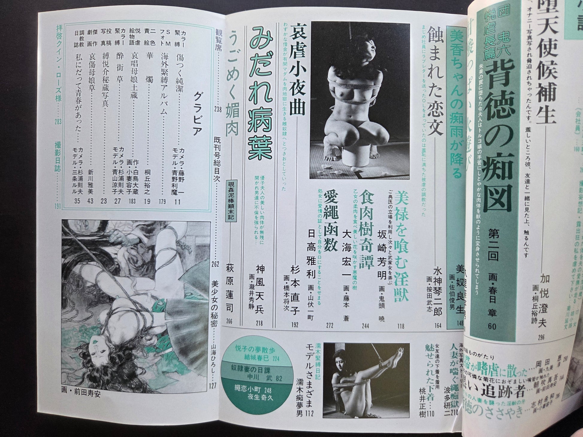 Running for 20 years between 1970 and 1990, SM Select was a large step up in erotic and fetish art magazines for Japan. Many covers featured the artwork of Kaname (Yoko) Ozuma, like this issue here. Interior art also by Yoko Ozuma, Toshio Saeki, Juan Maeda, Yuji Muku and many prominent photographers, models and other illustrators.