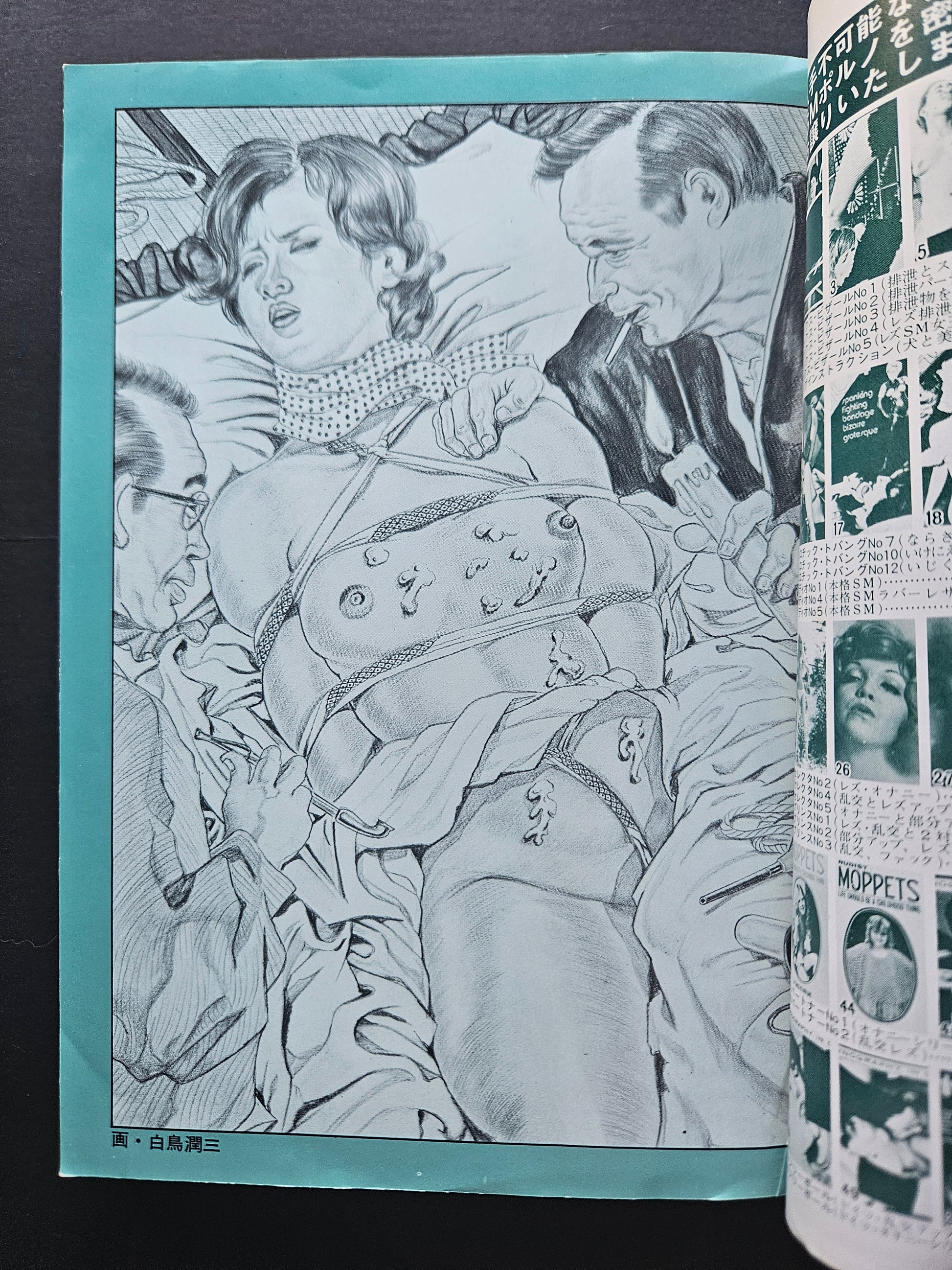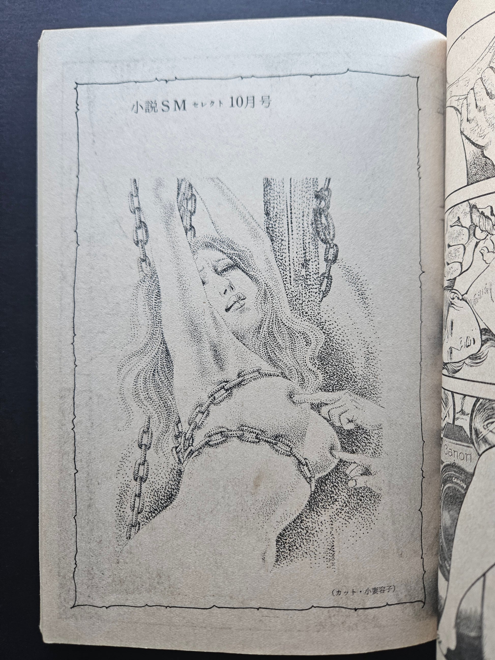 Running for 20 years between 1970 and 1990, SM Select was a large step up in erotic and fetish art magazines for Japan. Many covers featured the artwork of Kaname (Yoko) Ozuma, like this issue here. Interior art also by Yoko Ozuma, Juan Maeda, Yuji Muku and many prominent photographers, models and other illustrators.