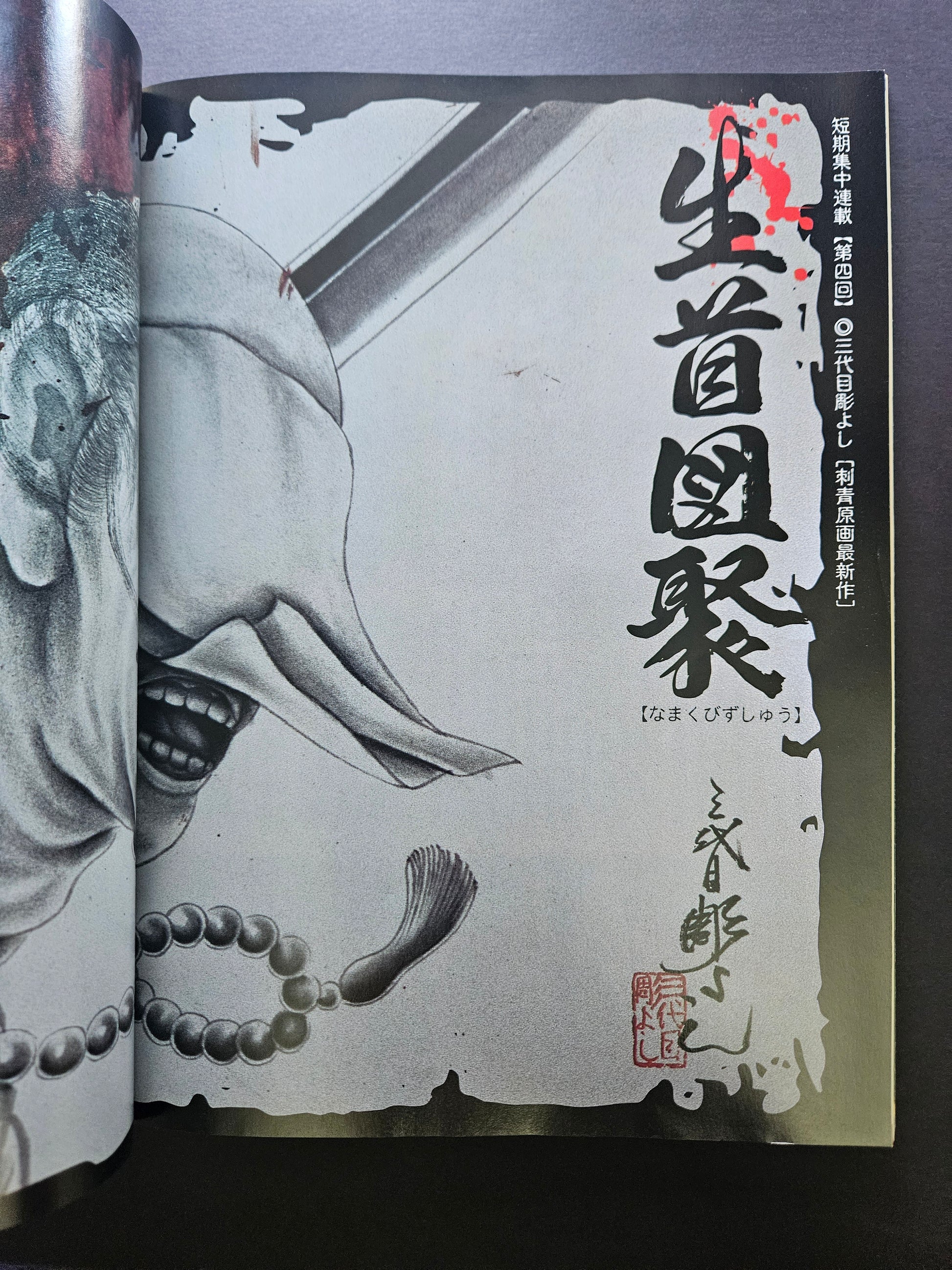Volume 16 of Tattoo Burst is from November 2003 and features articles on several tattoo events, like the New York City Tattoo Convention of 2003, Japanese tattoo events throughout the first half of 2003, Hoote Nanny 2003 and more. Horiyoshi III has an article on his newest book, and he also did the logo design for the tattoo manga. Kaname Ozuma article on his tattooed fantasy women series, and several artists are included with their full body irezumi clients showing off.