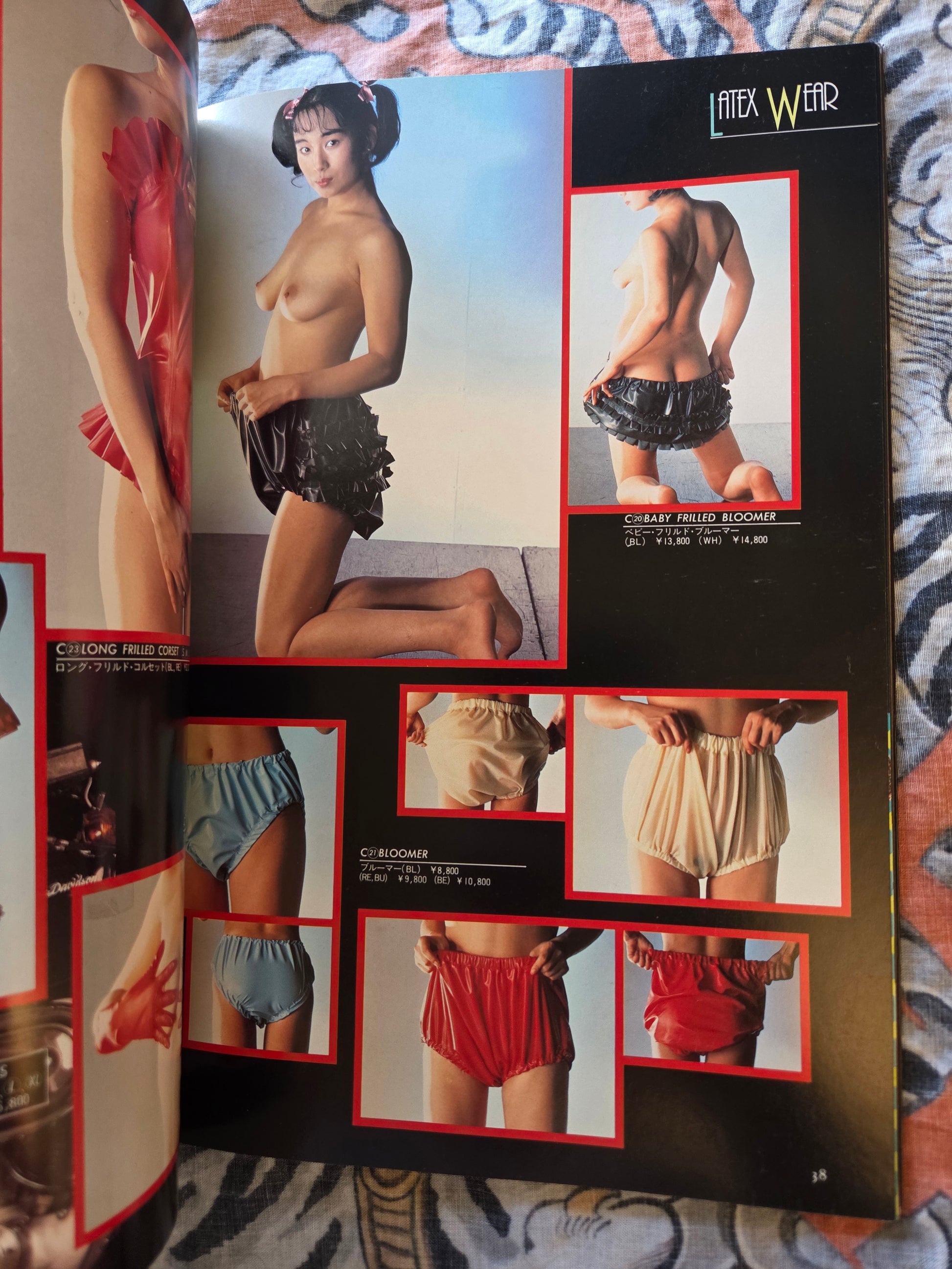 Second volume from Tsukasa Mook's Bizarre and Fetish World. Tsukasa Mook was a popular publisher of erotic magazines in the mook format, a magazine book meant for more than just monthly rotation. This particular issue shows off fashion and products in the fetish world of the late 1980s. Several popular AV models pose in leather, lingerie, lace and other types of fashion. Excellent photography.