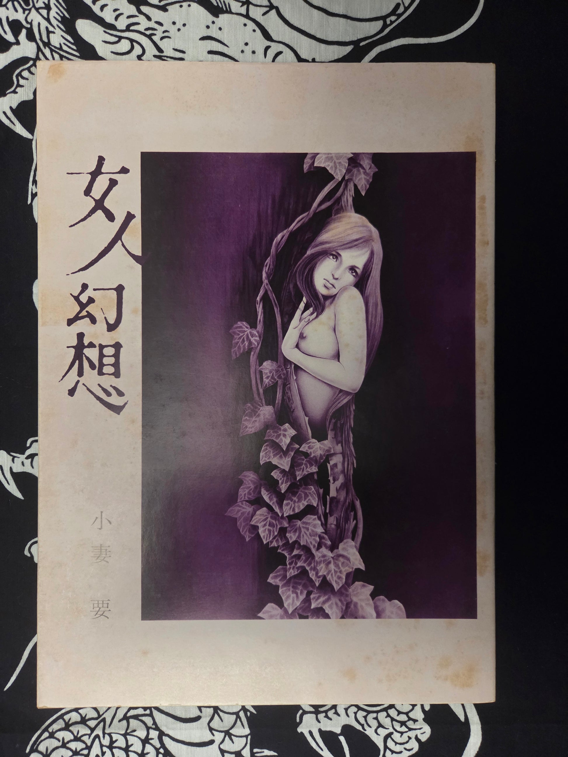 Kaname Ozuma's very first art book collection from 1972 is titled Woman Fantasy (女人幻想). As the artist started getting more published work in adult magazines like Kitan Club, SM Select and SM Fan, he started producing more fantastic pieces like featured here. Although he later became well-known for his tattooed models, this book is a predecessor to that particular style.